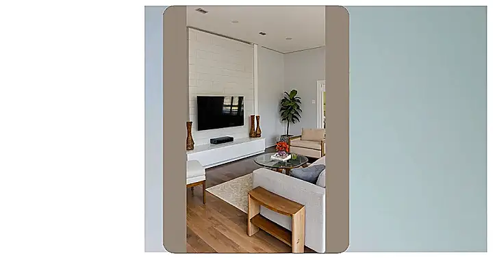 This living room is like the cool older cousin you always wanted! It’s got that relaxed, “I didn’t even try” vibe, but everything is actually super stylish. The earthy tones and natural light scream “chic boho,” but it’s also got a big TV, because even free spirits like to binge-watch their favorite shows in style!
