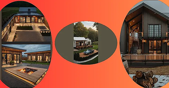 Imagine this: you’re chilling in your super-stylish barndominium, a cozy and compact home that’s way cooler than a regular house. It’s got all the modern amenities, big windows that let in tons of light, and a rustic wooden exterior that screams “sophisticated farmhouse.” Picture yourself relaxing by the fire pit at night, roasting marshmallows with friends—under the stars! The image shows just how amazing it could be, with a big, inviting fire pit, ready for all your evening hangouts and stories. It’s the perfect blend of comfortable and compact living!