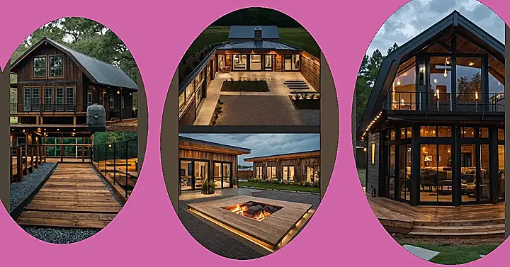 Imagine this: you’re chilling in your super-stylish barndominium, a cozy and compact home that’s way cooler than a regular house. It’s got all the modern amenities, big windows that let in tons of light, and a rustic wooden exterior that screams “sophisticated farmhouse.” Picture yourself relaxing by the fire pit at night, roasting marshmallows with friends—under the stars! The image shows just how amazing it could be, with a big, inviting fire pit, ready for all your evening hangouts and stories. It’s the perfect blend of comfortable and compact living!