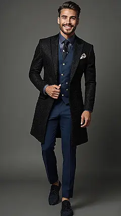 This outfit is like a cheat code for looking good. It shows you can dress up without looking like you’re trying too hard. Plus, that little pocket-watch chain adds a touch of old-school class. It’s like saying, “Yeah, I’ve got style AND I’m punctual…mostly.” Pair it with a confident smile and you’ll be turning heads all night, guaranteed!