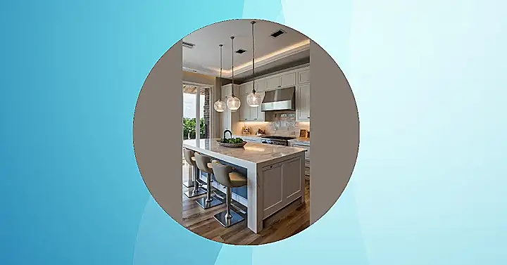 This kitchen is so chic, it’s practically wearing a tiny beret and ordering a café au lait! The color scheme is all mellow vibes, like a super fancy milkshake, but without the brain freeze. It’s got all the important things: a sink for washing dishes after you burn the pizza rolls (we’ve all been there), some cool stools for watching your mom make dinner, and lighting that makes you look like a movie star.