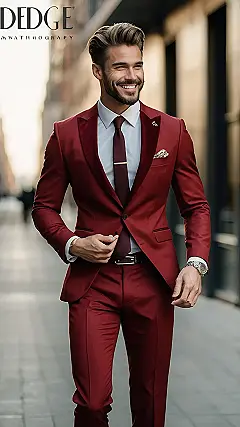 This guy’s rocking a men’s red suit like nobody’s business! Seriously, it’s like he stepped straight out of a James Bond movie, but instead of saving the world, he’s probably just going to a really fancy prom or maybe a super cool party. That red suit is seriously eye-catching—it’s the kind of outfit that makes you want to do a double-take and maybe even a little dance. Imagine the confidence this suit brings, it practically radiates “I’m awesome” from every stitch!