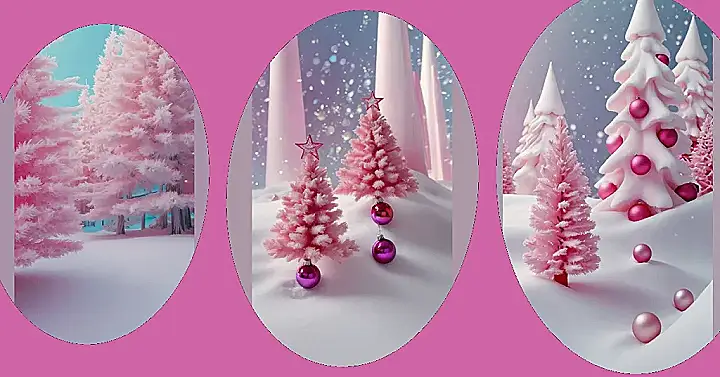 **Paragraph 1:** OMG, check out this Christmas wonderland! It’s like Santa traded his red suit for a fluffy pink one and decided to decorate the North Pole with cotton candy trees. Seriously, these pink, snow-dusted fir trees are the cutest thing ever! They’re twinkling with little lights, and there’s even a sparkly snowflake on top of the main tree β way more stylish than a traditional star, right? I bet even the grumpiest Grinch would crack a smile at this scene.