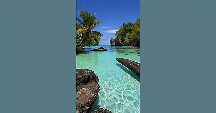 Imagine diving into water so clear, you can practically count every grain of sand below! This isn’t some fancy screensaver; it’s a real-life tropical paradise where the biggest decision you’ll face is whether to sip your fruit punch from a coconut or a pineapple. And check out that fallen log, practically begging you to use it as a natural diving board! Just promise you’ll watch out for any sleepy sea turtles before you cannonball in.