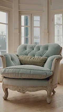 This sofa looks like it belongs in a palace! With its fancy, carved legs and soft, blue velvet cushions, it’s like a throne fit for a king or queen. Imagine yourself lounging on it, sipping tea and reading a book. Maybe you could even wear a crown while you’re at it!