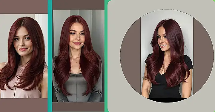 Seriously though, that color is incredible! It’s like the richest, deepest shade of red wine you can imagine, with those subtle layers adding depth and dimension. Forget the boring old browns and blondes – this wine-red is a total head-turner. It’s the kind of hair that makes you want to run your fingers through it (and maybe even take a tiny sniff – just kidding… mostly!). It’s the perfect example of how a great haircut and hair color can totally transform your look.