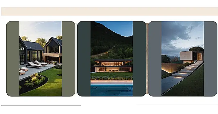 The house sits in front of some seriously epic mountains. Imagine waking up every day with that view! It’s like having a giant, natural artwork right outside your door. This house definitely wins the “Best View Award,” and it’s making me wish I could take a dip in that pool!