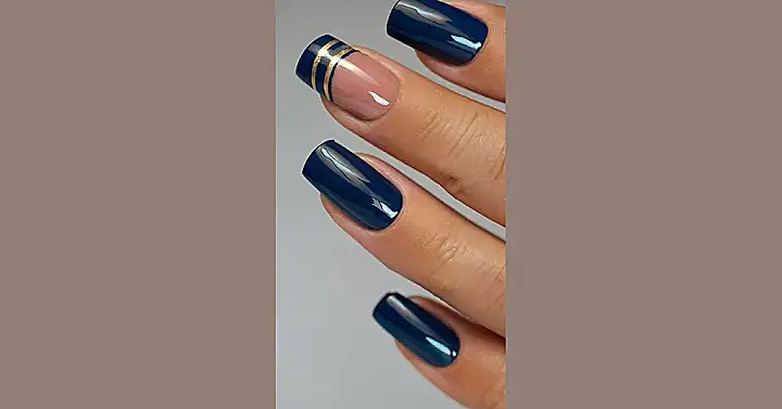 These nails are seriously giving us “I’m a queen, bow down” vibes, but in a totally chill way. The deep blue is like looking into a super-smooth ocean, and the gold stripes are like sunshine reflecting on the water. It’s a classic look, but with a little bit of bling, making it totally on-point for any situation. Imagine walking into school with these nails, heads are turning for sure!