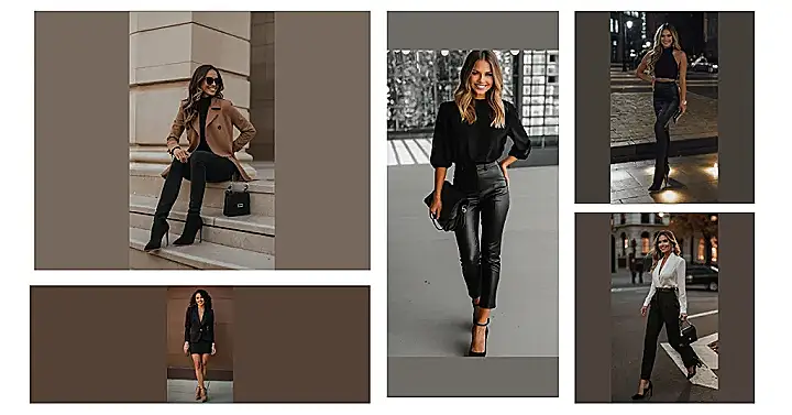 It’s almost like this outfit is saying, “Hey, look at me, I’m chic and I’m ready to take on the night!” The combination of the leather pants and the black top creates a super sleek look, and those heels just add a touch of sass. This outfit is perfect for anyone who wants to feel confident and ready to conquer the night!