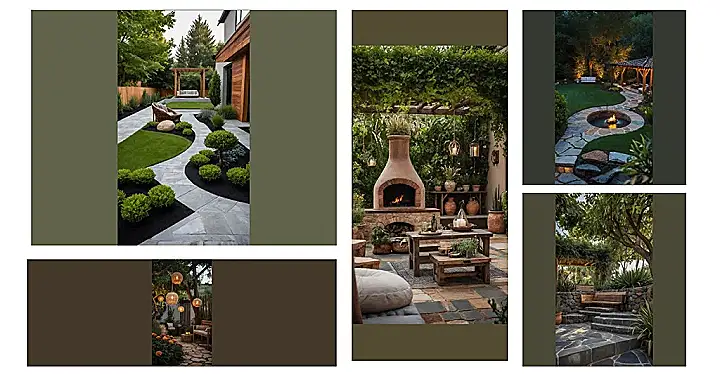 Let’s talk about the details because that’s where the real outdoor decor magic happens. Look at that winding stone path – way cooler than just walking on grass, right? And all those lights tucked away in the bushes? They make the place glow like something out of a movie, showing off the cool trees instead of just plunging everything into darkness. It’s not just about having a fire feature; it’s how everything comes together – the comfy seats under the cool roof structure, the perfect path, the clever lighting. These small touches turn an ordinary yard into the ultimate spot for late-night chats or just soaking in the awesome atmosphere with zero mosquitoes (okay, maybe some, but it’s worth it!).