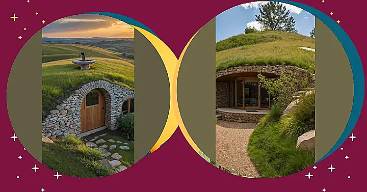 Dreaming of a place that’s seriously cool and maybe a little secret? Check out this awesome spot! It’s called an earth-sheltered home, which basically means it’s tucked right into the hillside. See that epic round door? It looks like it’s waiting for a hobbit to pop out and invite you in for elevensees. Plus, instead of boring old shingles, the roof is covered in grass! You could probably lose your Frisbee up there permanently.