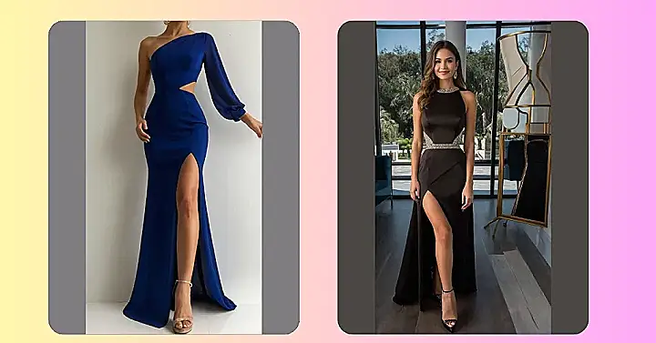 These black dresses are so elegant, they practically walk themselves! Seriously, just look at those sleek lines – perfect for a party where you want to look amazing but also maybe slightly scare off anyone who tries to steal your fries. One’s a one-shoulder stunner that’s ready to hit the dance floor, and another is a long-sleeved velvet dream that’s basically saying, “Yes, I *am* this fabulous.” They’re all about sophistication with a hint of “don’t even think about it” attitude. Who needs a superhero cape when you’ve got these?