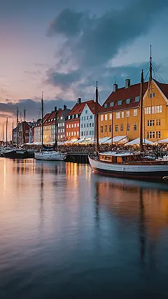This picture is totally giving off cool, calm vibes! Imagine chilling by the water, watching these boats bob up and down. It almost looks like something out of a movie, right? You know, the kind of scene where the main character is having a serious conversation, or maybe about to embark on an epic quest. All those lights reflecting on the water make the whole thing super Instagrammable, showing off that perfect “Denmark aesthetic” everyone’s always talking about.