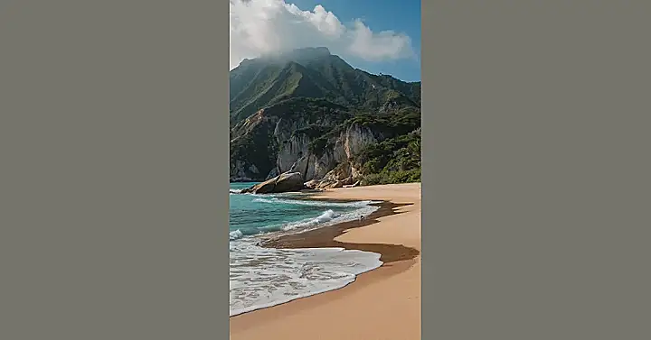 Dude, check out this beach! It’s so chill, it’s practically horizontal. Forget your worries about homework and drama; just imagine kicking back on that sand, listening to the waves, and maybe even building a sandcastle so epic, it challenges that mountain in the background. Seriously, this place screams “Netflix and nap” but with actual sunlight and zero annoying notifications.