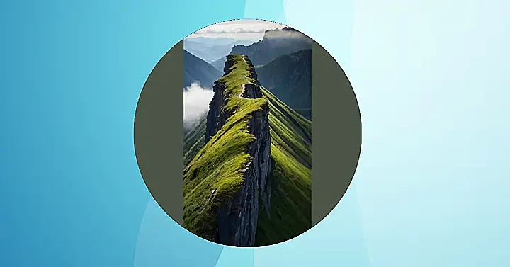Wow, check out this grassy path clinging to the edge of a mountain! It looks like someone carefully drew a green ribbon across the top of the world. Imagine the amazing mountain top view photography you could get from here – you could practically touch the clouds! It’s a bit like a giant, natural rollercoaster, but instead of screaming, you’d be snapping epic photos of the breathtaking scenery. Probably wouldn’t want to drop your camera though… yikes!