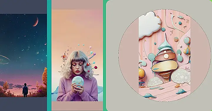 This image is like a scene straight out of a cartoon! It’s all bright and colorful, with a whimsical and almost dream-like quality. It makes you feel like you could jump right into the picture and explore a fun, fantastical world. The candy-colored house in the middle is just begging you to come inside and see what’s going on! It looks like it could be filled with yummy treats and exciting adventures. The giant mushrooms and clouds make you feel like you’re walking through a magical forest, and the cute little fishes and swirls are just the cherry on top.