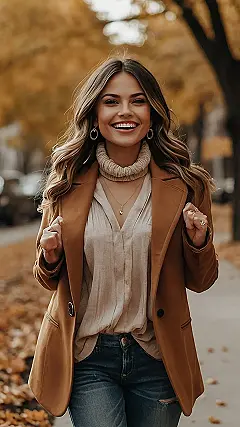 This outfit is basically a hug in human form! Imagine strolling through a park, leaves crunching under your feet, wearing this comfy combo. You’ve got your trusty jeans, a flowy shirt that’s perfect for layering, and a cozy blazer to keep you warm. The whole look screams “I’m ready for pumpkin spice lattes and a good book.” Who wouldn’t want to look this comfy AND stylish while enjoying the beautiful fall weather?