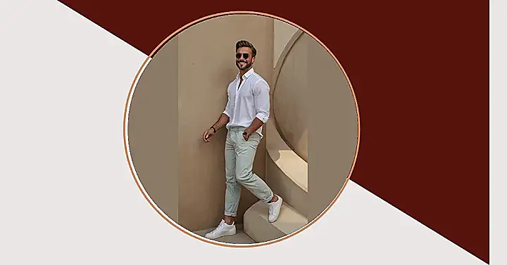 Those crisp white sneakers are the ultimate weekend weapon! They go with everything, and they scream, “I’m ready for whatever, but I’m also ready to look good doing it.” Paired with those light chinos and an open shirt, it’s like he’s saying, “Yeah, I woke up like this,” even if he totally spent 15 minutes making his hair perfect. Just don’t spill ketchup on that white shirt, because your cool weekend look will turn into a total fashion emergency!