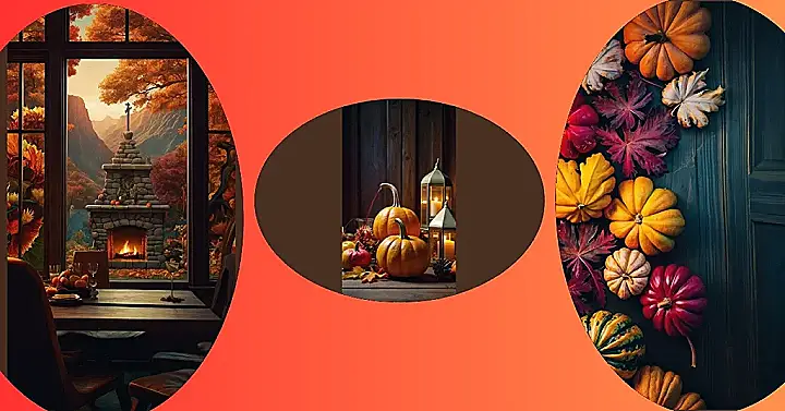 This picture screams “Thanksgiving!” with its cozy pumpkins, twinkling candles, and warm fall colors. It’s like the perfect scene for a delicious Thanksgiving feast, even if it’s just a pumpkin pie for one. Imagine yourself nestled in a comfy chair, enjoying the warmth of the candlelight and the scent of pumpkin pie filling the air. You might even hear the distant sound of your favorite Thanksgiving tunes playing in the background! What could be better than this?