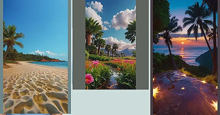 Imagine walking barefoot on the soft sand, the sun warming your skin. You look up, and wow! The ocean shimmers like a giant, sparkling blue jewel, framed by lush green trees and a clear blue sky. But wait, what’s that? The sand beneath your feet isn’t just flat and smooth. It’s bumpy, like a giant honeycomb, making it look like the beach itself is breathing!