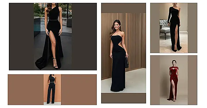 These black dresses are so elegant, they practically walk themselves! Seriously, just look at those sleek lines – perfect for a party where you want to look amazing but also maybe slightly scare off anyone who tries to steal your fries. One’s a one-shoulder stunner that’s ready to hit the dance floor, and another is a long-sleeved velvet dream that’s basically saying, “Yes, I *am* this fabulous.” They’re all about sophistication with a hint of “don’t even think about it” attitude. Who needs a superhero cape when you’ve got these?
