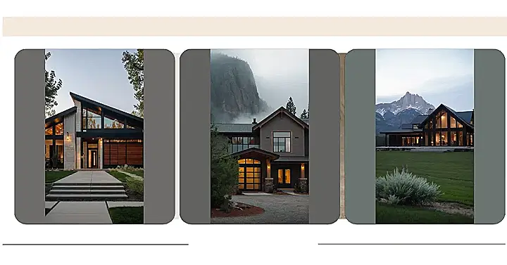 This house looks like a modern take on a classic ranch style. Imagine sitting in that giant window, sipping hot cocoa, and gazing at those majestic mountains in the background! That’s the life, right? It’s like something out of a movie, except without the scary monsters and creepy villains!