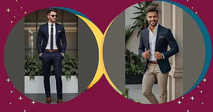 Putting on a sharp jacket like that guy in the picture makes you feel pretty important, doesn’t it? Suddenly, you’re not just you; you’re the kind of person who might actually have a briefcase (filled with snacks, probably). Throw on a bright white shirt underneath, and boom – instant glow-up. These kinds of men’s business outfits are basically like cheat codes for looking put-together, even if the most complicated thing you’re dealing with is remembering your locker combination.
