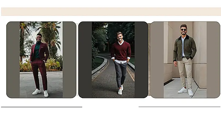 **Paragraph 1:** Hey there, fashion-forward friends! Check out this dude rocking the ultimate smart casual look. It’s like a suit, but way more relaxed. Forget stuffy ties and uncomfortable shoes – this guy’s got a snazzy burgundy suit paired with a comfy turtleneck and super stylish white sneakers. It’s sophisticated, but it’s also totally chill. Imagine wearing this to a fancy dinner with your family, or maybe even a school dance (if your school allows it!). It’s the perfect blend of dressy and casual, proving that you *can* be both stylish and comfortable.