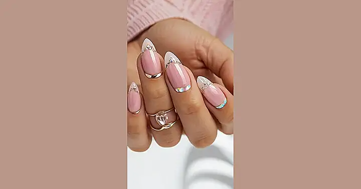 Okay, so spring is like, *the* time for fresh starts and cute outfits, right? And what better way to complete the look than with some killer spring nail color? This manicure is seriously giving us major princess vibes! The soft pink paired with the crisp white tips? So elegant! Plus, the blingy silver designs are like tiny spiderwebs of sparkle, and honestly, we’re obsessed. This mani is definitely ready for prom!