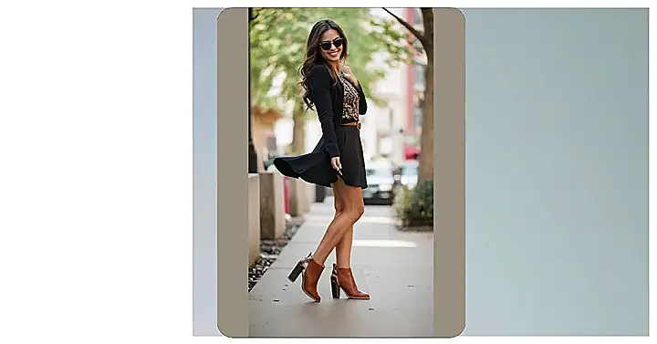 This outfit is the perfect mix of cute and cozy! The black blazer and skirt are a classic combo, but the animal print top and boots add a touch of fun and personality. It’s the kind of outfit that would make you feel confident and ready to tackle anything, even the first chilly day of fall. Plus, those boots are seriously amazing! They look like they’re made for walking around town and enjoying the crisp autumn air.