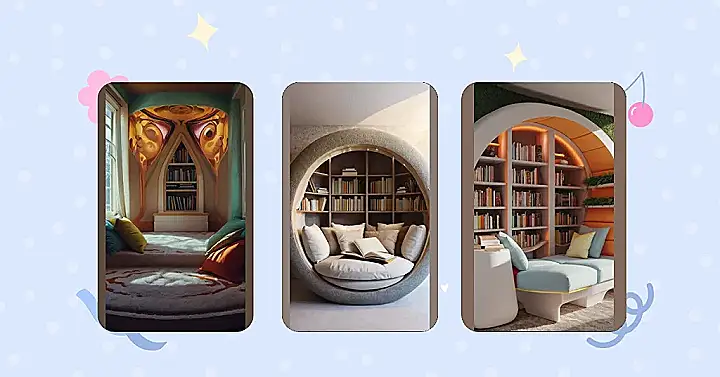 But, it’s not just about the books and pillows, right? The whole vibe is kinda magical. Those faces around the bookshelf definitely have something to say, maybe they even whisper secrets about what’s inside those books. I bet if you listen closely, you might just find the next great novel staring right back at you. Seriously, this is where book dreams are made!