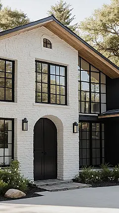 Look at this place! This white cottage exterior is so crisp and clean, it looks like it just walked out of a fancy car wash for houses. The white brick is giving off major cool-kid energy, and those sharp black window frames are like the perfect accessory. It’s basically saying, “Yeah, I’m a cottage, but I’m a *really* cool cottage, so try and keep up.” You half expect it to wink at you as you walk by, probably muttering something about how good its paint job is.