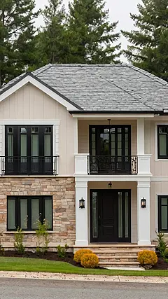 This house practically screams “comfy vibes only.” It’s got that classic look, but with a modern twist that says, “Yeah, I’m stylish, but I also have a really awesome snack drawer.” Just picture curling up on a plush couch inside with a good book while the rain patters against those giant windows. Forget about world domination, this house is all about ruling the realm of relaxation.