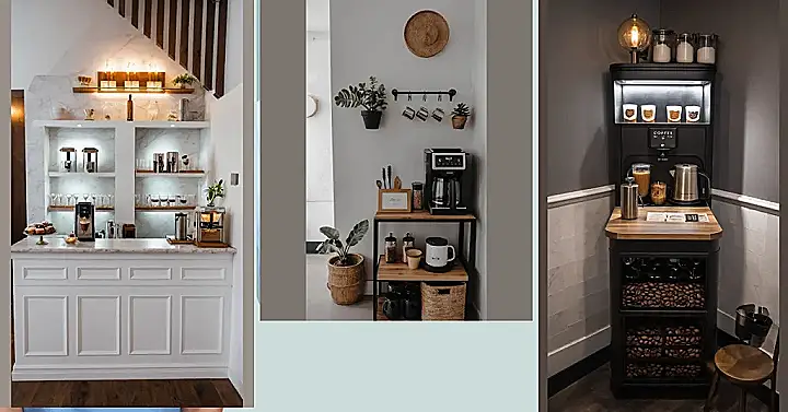 But it’s not just about the gadgets; it’s about making it YOUR space. Look how they added plants in the picture – suddenly it’s not just a counter, it’s a mini jungle cafe! You can throw in a funny framed picture, use a cool basket for your stir sticks, or hang up quirky mugs that make you smile. This is where you get to show off your style, whether you’re going for super chill vibes, mad scientist energy, or something totally unique. It’s your personal spot for brewing up not just drinks, but also good moods and maybe even some epic ideas. Make it look awesome, and you might just become the official (and probably only) barista of your house.