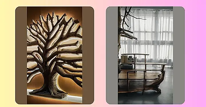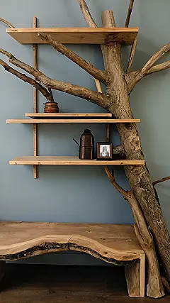 This isn’t your grandma’s bookshelf! Check out this awesome tree branch shelf – it’s like bringing a little bit of the outdoors inside. Imagine all the cool books, plants, or even quirky knick-knacks you could display on its unique branches. It’s way more interesting than those boring, old square shelves, right? It’s practically a piece of art that also holds your stuff!