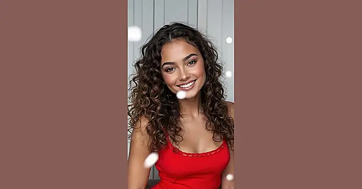 This girl’s got hair that’s practically begging to be played with! It’s so long and curly, it looks like a waterfall of chocolatey goodness. Imagine all the fun you could have with this hair, like twirling it around your finger or braiding it into a million different styles! You’d probably need a whole day just to decide what to do with it.