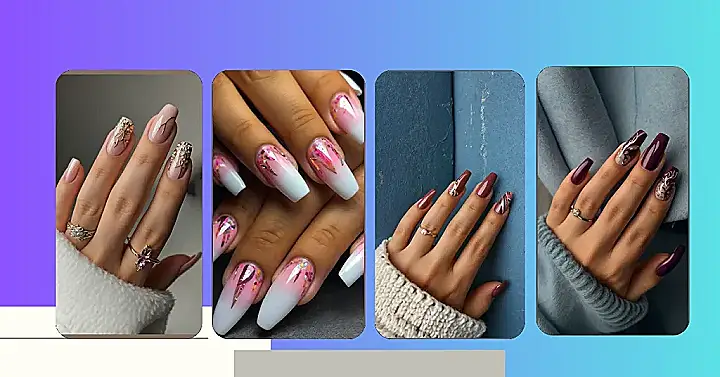 These simple acrylic nail designs are totally adorable! Imagine showing off these pretty burgundy and blush pink flowers on your nails – it’s like carrying a tiny, wearable bouquet everywhere you go! They’re so easy and chic, you’ll be feeling like a total nail art queen without spending hours in the salon. Plus, the color combo is perfect for any season – autumn vibes or spring blossoms, they work!