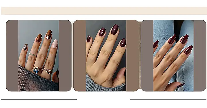It’s so cool how these nails are like a whole outfit for your fingertips! They can instantly upgrade any look, just like switching from a boring old t-shirt to a stylish dress. You can have fun with different colors and designs, but this brown combo is just *chef’s kiss*. We’re already dreaming up all the different ways to style our nails this fall! üçÇ