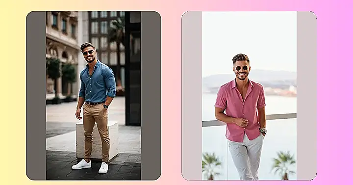 Alright, picture this: You’ve survived another week of school, and it’s finally the weekend! This dude in the photo totally gets it. His relaxed coral-colored shirt and those clean white pants scream, “I’m off duty, but I still look awesome.” Plus, the sunglasses? They’re basically saying, “Bring on the sunshine (and zero homework)!” It’s the perfect mix of comfy and cool, proving you can look put-together without trying too hard.