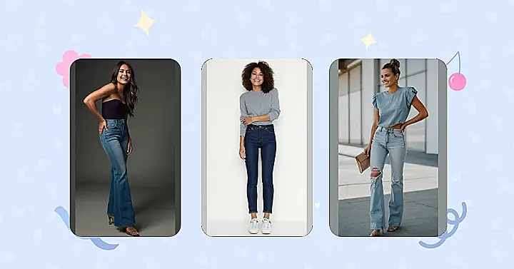 Okay, so you’re in the mood for some new jeans. But with all the different styles out there, it can feel like you’re in a denim maze! Think of this picture as your guide. Just like this model, you can rock some super stylish women’s denim. Those ripped jeans are like a cool statement, telling the world you’re not afraid to show your personality. And the flared legs? Well, they’re like walking on a runway, making sure everyone knows you’ve got your own unique style.