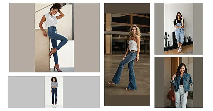 Okay, so you’re in the mood for some new jeans. But with all the different styles out there, it can feel like you’re in a denim maze! Think of this picture as your guide. Just like this model, you can rock some super stylish women’s denim. Those ripped jeans are like a cool statement, telling the world you’re not afraid to show your personality. And the flared legs? Well, they’re like walking on a runway, making sure everyone knows you’ve got your own unique style.