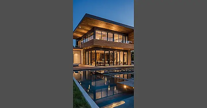 Whoa, check out this place! It looks less like a house and more like a giant, cool art installation you can actually live in. Seriously, the way the big windows catch the light and reflect off that awesome pool area makes it look like something out of a high-tech spy movie. It’s proof that house architecture design isn’t just about stacking boxes; it’s about making a place look totally epic and probably making you feel like the coolest person on the block just by standing near it.