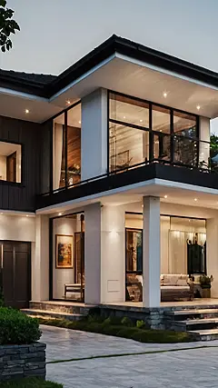 This isn’t your grandma’s two-story house! Look at that sleek design – it’s like a modern castle made of LEGOs, but way cooler and definitely bigger. Instead of knights and dragons, you’d probably find someone ordering takeout pizza on that awesome balcony. It’s the kind of house where you could totally have a secret elevator (even if you don’t actually have one, just pretend!).
