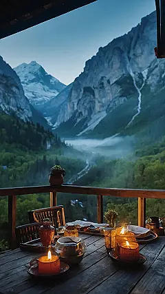 **Title:** Mountain Majesty: Cozy Candles and Dreamy Views