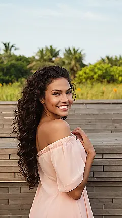 This girl’s got a hairstyle that’s totally rocking! It’s like a curly waterfall cascading down her back. Those curls are so bouncy, you could probably bounce a basketball off them! Maybe she’s going to a fancy party or a special date, or maybe she’s just feeling like a queen bee. Whatever the reason, she’s definitely got the “I woke up like this” vibe going on, even though we all know it takes some serious styling skills to get those curls looking this perfect!