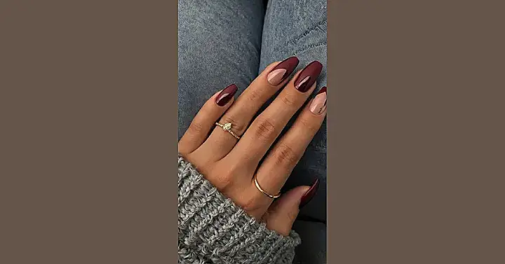 Now, let’s talk about that design! It’s like the nail artist couldn’t decide between burgundy and nude, so they were just like, “Why not both?” And honestly, genius move. Plus, with a ring like that, you will have everyone wondering if you’re secretly a princess in disguise. Either way, these nails are straight-up fire!