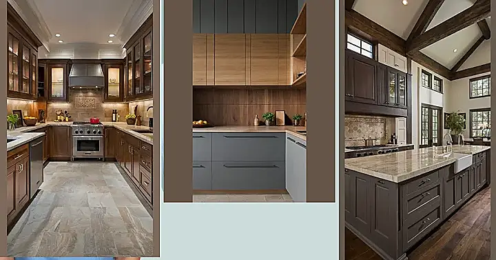 Now, notice how the cabinets are two-toned? It’s like they couldn’t decide on one color and said, “Why not both?” The dark gray on top and the wood finish in the middle totally complement each other. This kind of contrast is a big trend, making your kitchen look super modern and stylish without needing to hire a professional designer (phew!). Plus, imagine all the cool ways you could organize your stuff in there – color-coded spices, anyone?