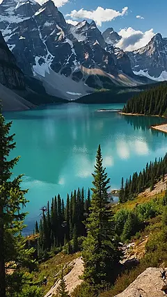 This photo is so ridiculously scenic, it’s almost like Mother Nature went a little overboard with the filters. It’s the perfect wallpaper for when you’re stuck in math class and need a mental escape to a place where the only problems are deciding which pine tree to climb first, or whether to skinny dip in that bright blue lake (maybe not that one!). At least your phone screen can look like paradise, even if your real life feels like a pop quiz.