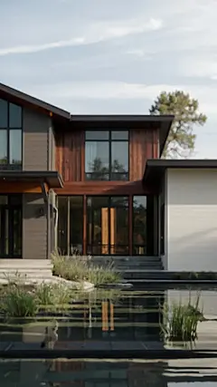 And check out that pond! I bet it’s perfect for taking a dip on a hot summer day. This place has it all – modern style, cozy vibes, and a touch of nature. It’s the perfect spot for hanging out with friends and family, or just chilling out on your own. This house is like the coolest kid in school, with a killer personality and a super chill vibe.