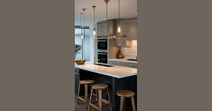 This kitchen went from boring to bold in a flash! The sleek gray cabinets and shiny marble countertops make you want to whip up a feast right away. And that cool light fixture? It’s like a giant spaceship hovering over the island! Imagine having all your friends over for a party, and they walk into this awesome space. They’d be like, “Whoa, this is the coolest kitchen ever!”